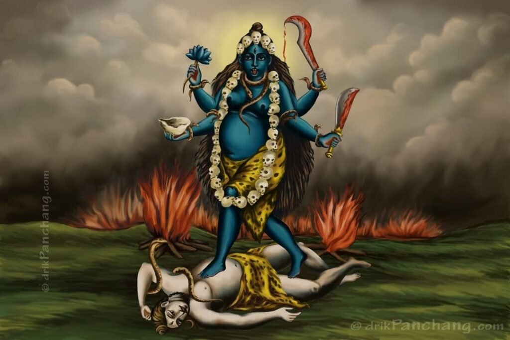 Embodiment of time and transformation, she destroys darkness and removes fear, bringing strength and liberation.